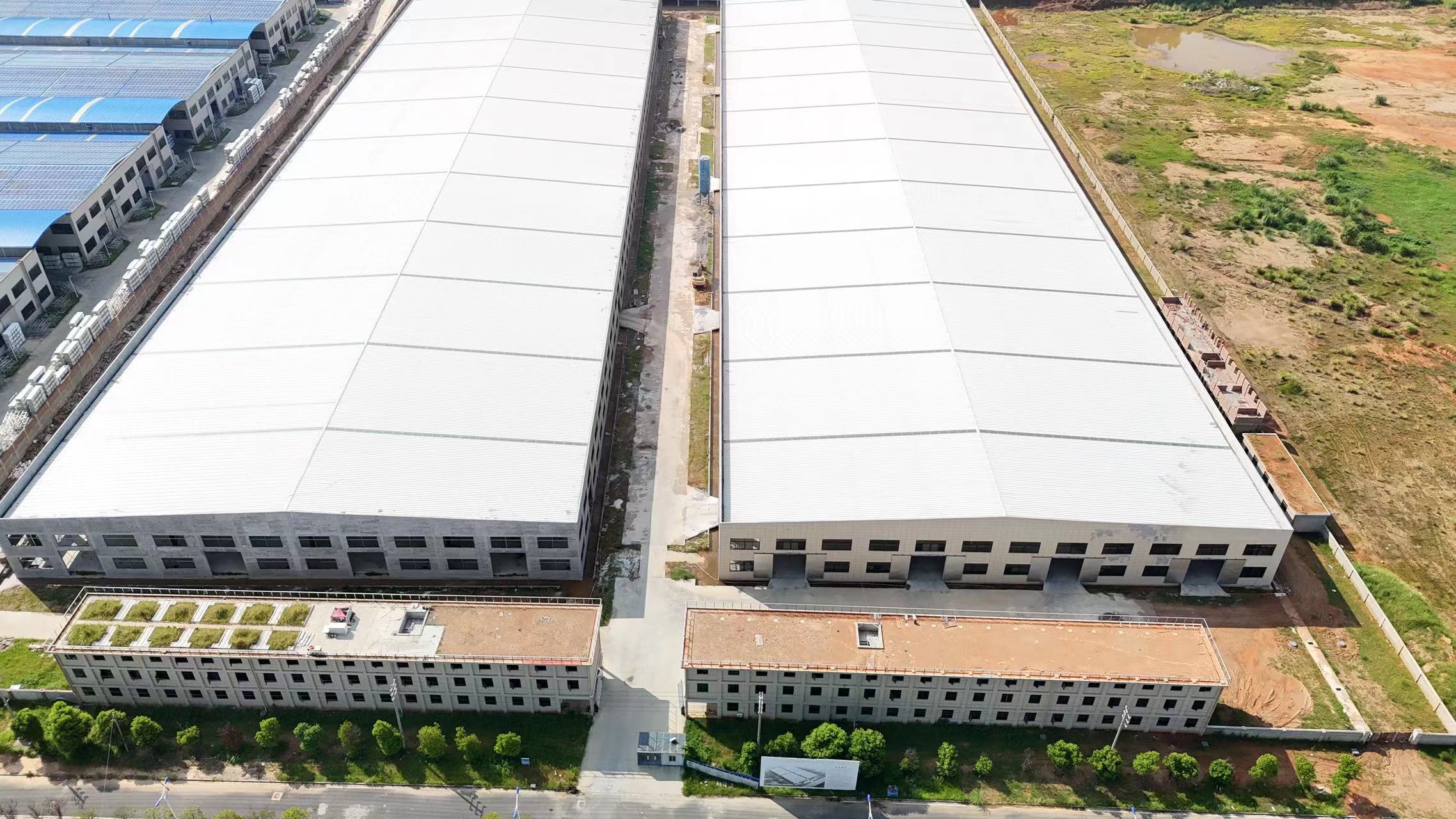 厂房简介:2023年新盖厂房,全新厂房,单座厂房建筑面积23688㎡,钢结构主体,四周全墙面钢结构形式,抗震设防烈度6度。独栋面积约24000平方米,有2栋可以出售,共约48000平方。两座厂房之间马路宽12米,专业停车位,360度无死角监控,24小时安保。厂区占地面积约100亩,配套有厂房、仓库、办公楼、门卫楼、配电房、高管公寓、员工宿舍、酒店及公共食堂,厂区内部水、电齐全,网络通讯全覆盖。